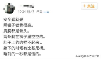 是渴望瘦,害怕成为别人眼里的“胖子”,成为别人眼中自暴自弃的懒人、不自律的loser。扭曲的身材标准、畸形的审美要求,让臣服的年轻人甘于接受这些痛苦,因为在他们眼中,如果付出这些痛苦,能够获得令人艳羡的苗条身材,那么付出就是值得的。