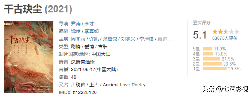 q2收视率霸榜的上星剧《叛逆者》只有20万观众打分,许凯、周冬雨主演的s级网剧《千古玦尘》,刚刚积累了6万+人数。
