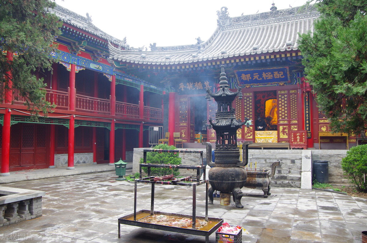 王母宫,凤尾羽亘,向离背坎,雄殿画栋,高台屹卧,蟠桃丰红,瑶池粼波,穆王临驾,王母盛迎。玄奘西游取经,路经琵琶洞涌,行者降状,山下神仙路,护师取经行。王母宫,林木深重,宫阁琳琅,绚丽怡悠。北望关中,一览无余,西瞻群峦,峥嵘万千,东眺玉贞观,春梦秋云,南仰翠屏,风景遥度天际。