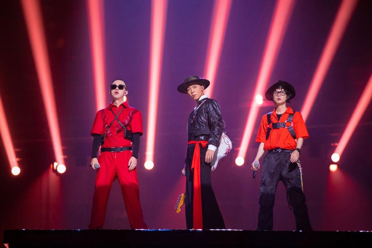 布瑞吉携周延(gai)、瑞奇(ricky),“铁三角”三人组带来的《站在高岗上》一出场就点燃全场气氛。周延和布瑞吉重新填写的歌词侠气十足,配合上瑞奇充满辨识度的嗓音,三人从后台一路唱到舞台中心,最后高高的升降台上,三人默契十足的表演赚足了观众的尖叫。