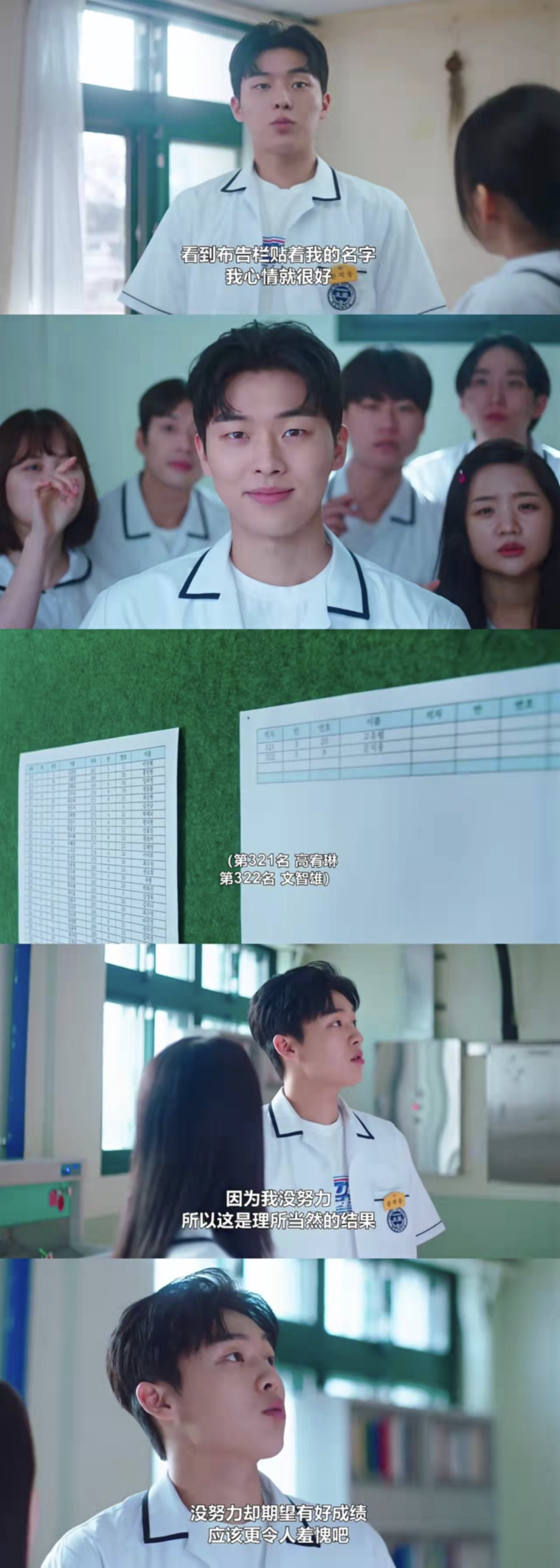 男2文智雄虽然成绩倒数第一,但并不会感到羞愧,因为他知道自己并没有付出努力,不应该去期望获得好的成绩。