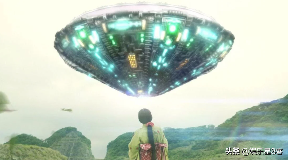 外星飞船从韩国改为降临在日本岛国,不过这个ufo的特效,的确有点“五毛”,完全不像是10年后该有的cg水准。