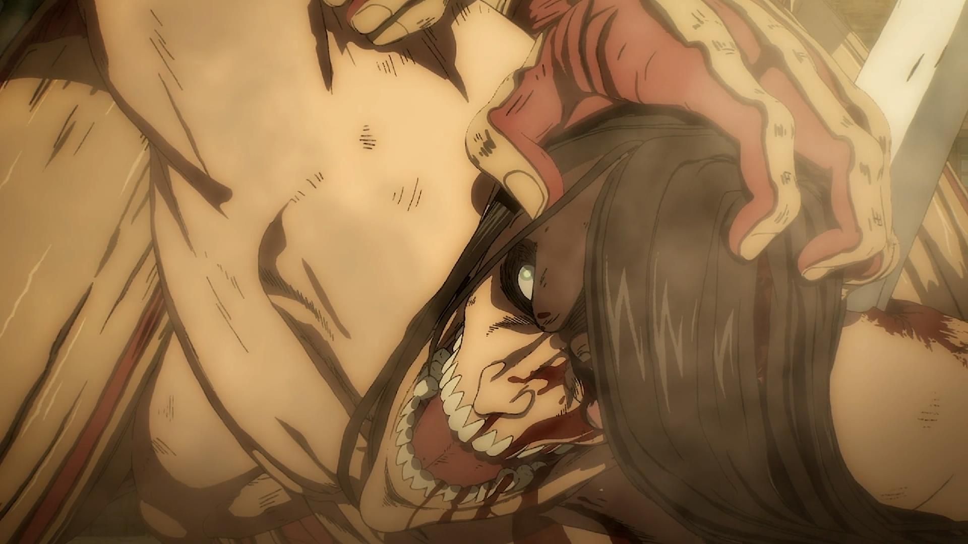 又到了进击的巨人最终季动画更新的时候了,这一集的剧情依旧是巨人大战,陷入苦战的艾伦仍未放弃,依靠其自身坚定的意志和战锤的能力,艾伦苦战颚巨和莱纳,最终将莱纳和颚巨暂时击退,而调查兵团的到场也让皮克的炮台暂时无法对艾伦出手。