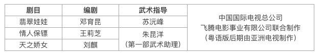 演员阵容:何家劲(郭旭)/何晴(朱天凤)/刘玉婷(程采玉)/黄文豪(程铁衣)/陈鸿烈(翁泰北)/车轩(小彭王爷)/顾冠忠(辛力)/梁少川(小豆子)/孟庭丽(吕巧儿&白玉莲)/铁梦秋(商六)/王建新(赵光远)/龙天翔(沈云)/张盈真(萧玲)