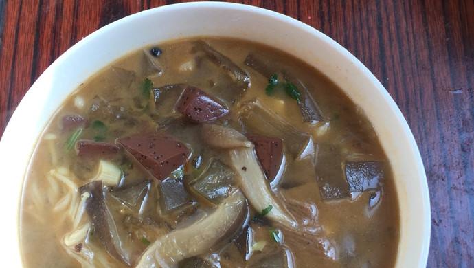 大年初一一大早,在院子里祭年磕头、点燃柏枝、燃放鞭炮之后,头顿饭凉粉汤饭就开始粉墨登场了。不要小看这一碗简简单单普普通通的烩凉粉汤,里边的门道挺多的。一是看一年来的收成怎么样,里边除了最后下锅切成方块的红薯凉粉之外,几乎囊括了一家所有备存的年货,全是好吃的……肉片、大肠、猪血、肝肺、豆腐、自己发的豆芽、煮熟的花生米、黑木耳、黄花菜、海带丝、虾米干、芹菜、青菜、蒜黄、白菜、香菜等等,总之,只要是买回来各种菜都可以放进去,典型的一原生态“全家福”啊。二是看家庭主妇的厨艺怎么样,除了色香味俱全之外,最主要的是凉粉的色泽、软硬和口感等。也就是说从一碗凉粉汤能看到全家人一年生活“大全集”了。三是看这家是不是过年和平时一样,平时不管做的咋样,过年这会街坊邻居都会互相攀比,看谁家先端出来第一碗凉粉汤,迎接新年的到来,所谓的风俗“头脑汤”了。