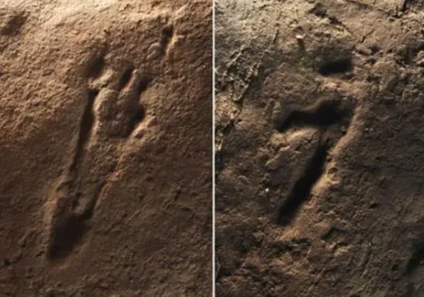 一种是大恐龙带着小恐龙行走留下的足迹;
