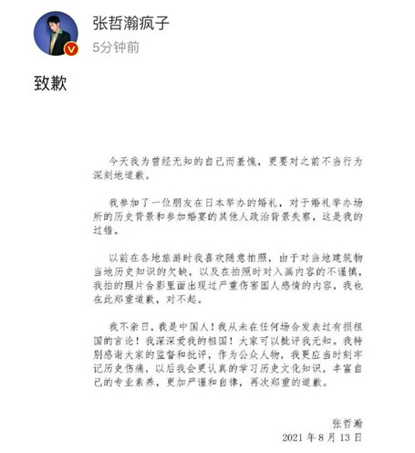 而随后他发的道歉声明,简单概括一下就是自己无知,自己不知道那些历史,那已经无关文凭文化了,而是身为一个中国人的一个自觉自知。他不该在享受这个社会最大红利的时候,去无视带给他红利的那些先辈,那是他们拿命换来的。