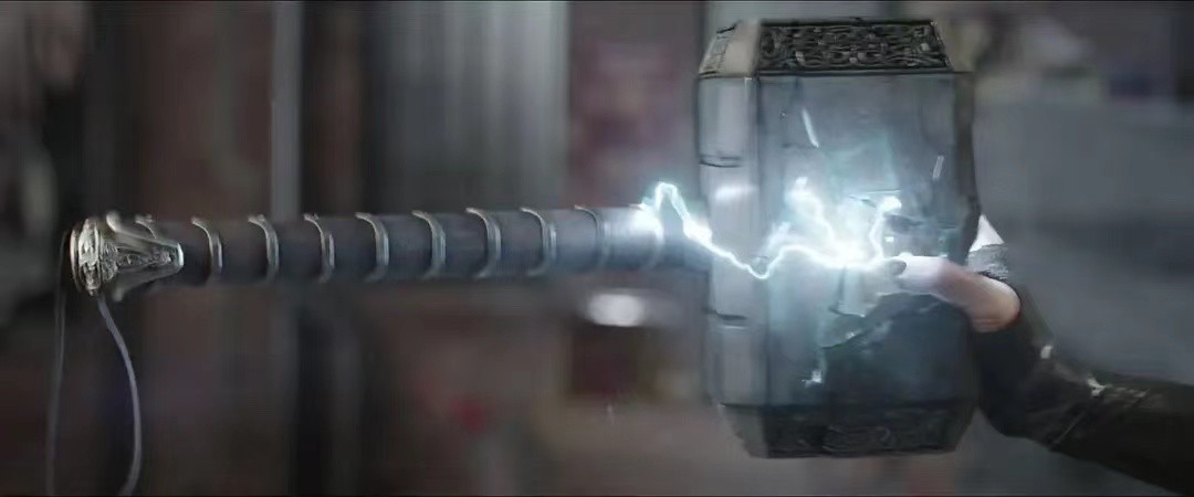 另外值得注意的是,方形的雷神之锤上的裂缝非常的显眼,在《雷神3》中这把锤子曾被海拉单手捏碎,后来,索尔又去了阿斯加德才把它拿回来修复好,出现在复联4的战场中。