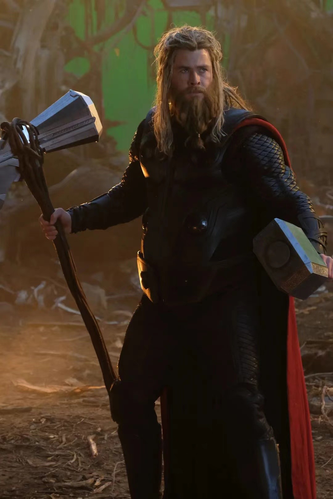 在复联4中,雷神因为无法接受灭霸打了响指,阿斯加德和洛基都回不来了,伤心绝望开始暴饮暴食,在最后决战的时候,战衣都遮不住小肚子,头发也是乱糟糟的。在这次的造型图中,索尔似乎一改以前的颓唐,又恢复了帅气的模样。