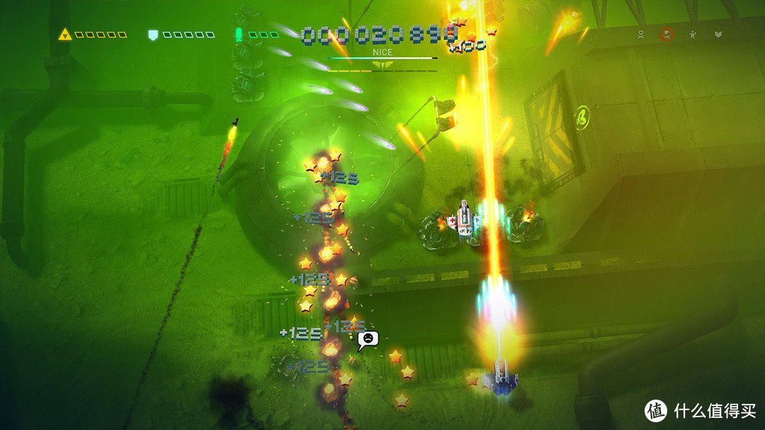 不能简单的把它定义为 stg 游戏,在我看来它实际上是一部带 stg 性质的养成类游戏。刷关卡拿星星升级自机,看着战机逐渐变得强大,火力越来越猛,副武器满屏幕乱飞,那种养成类游戏的快感油然而生。如果你觉得不过瘾,想玩硬核点的内容,那么噩梦难度在向你招手,没有点耐心跟天赋,我估计没多少个人过得了。