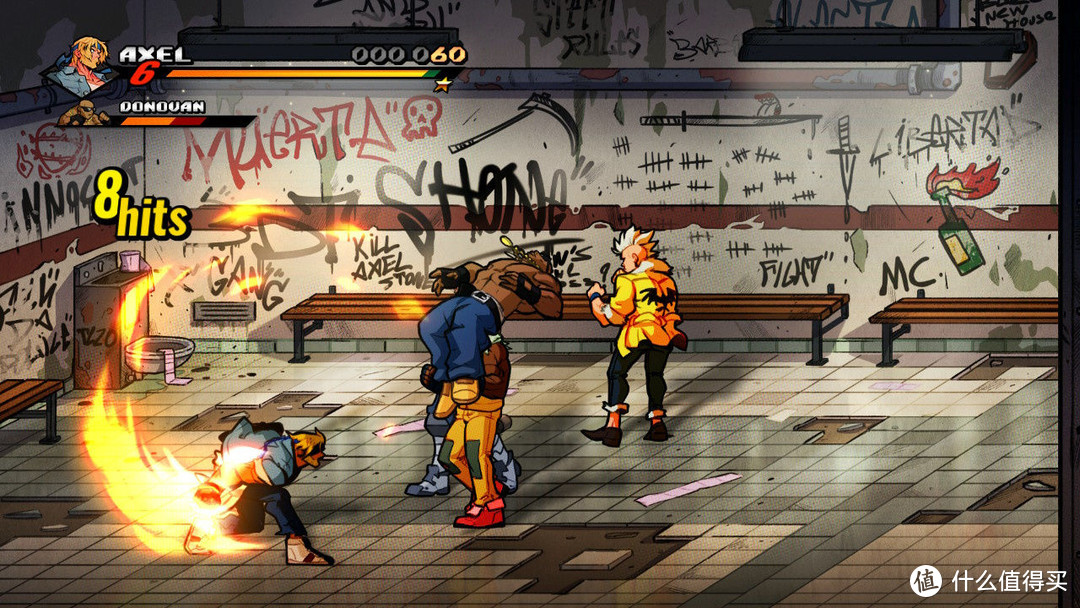 画面就不必说 ,卡通手绘风格全程流畅不掉帧,很好的保证了动作游戏的基本要求。卡帧卡得恰到好处的打击感,拳拳到肉的感觉非常到位,连技也有一定研究空间,好用不复杂,这些在配合 hd 震动之后体验更上一层楼,很久没有哪款游戏能带来这么畅快的锤人快感。关卡虽然不多,2 小时可通,但里面很多致敬老作品的隐藏地点,惊喜多多。游戏人物算上 dlc 还是挺多的,还带有让人泪奔的像素复古模式。