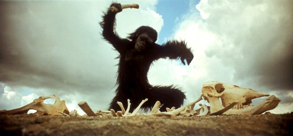 在这部巅峰之作中,库布里克对于声音的把控极为精准。这里的声音确指:音乐、一切噪音、角色台词、人类的呼吸声等。我们在前面已提及到音乐所具有的功能:营造氛围、扩大空间、贯穿主题,同时也会注意到当骨棒被太空飞船以简洁快速的剪切加以替换之时,古典乐——人类音乐高级形式对猿人杂乱的吼叫声的替代。影片中的声音和画面之间的关系值得细说,以此探讨影片的美学及其带来的新的感受力。