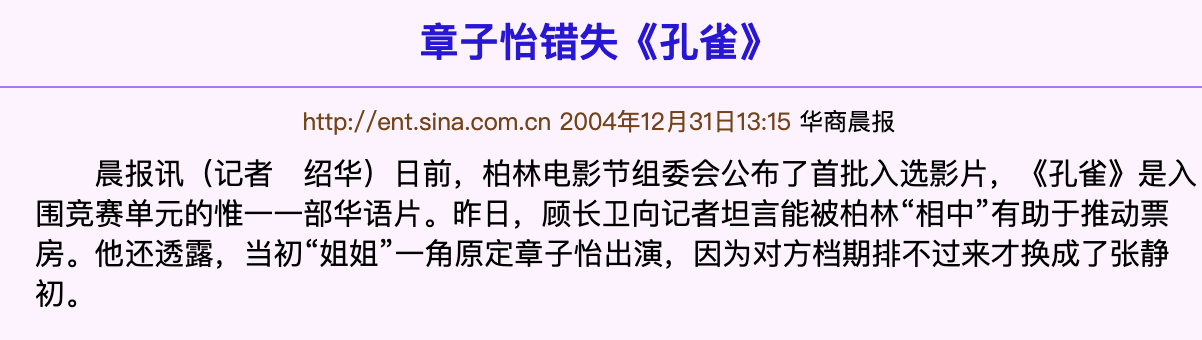 彼时的章子怡,继《我的父亲母亲》《卧虎藏龙》之后,已经被推上演员神坛。