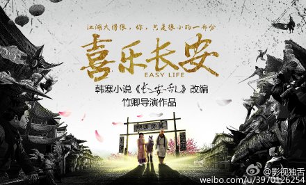 这样不讲道理的武侠小说,凭着韩寒冷幽默的文字,竟也勾画出一个青葱的江湖。《喜乐长安》的导演竹卿女士说,她希望电影忠于原著,人物的灵魂、故事的起伏、韩寒的风格,都尽量在精神内核上符合《长安乱》。