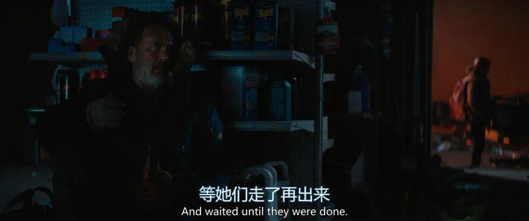 (一个小彩蛋:这段情节借鉴自汉克斯的老搭档斯皮尔伯格的长片处女作《决斗》,片中的中年男主角被一个始终不露面的卡车司机死亡追逐)