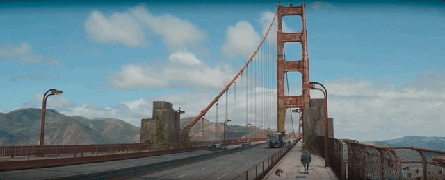 电影最后,杰夫看着金门大桥上满满的人类关于善意与美好的回忆。