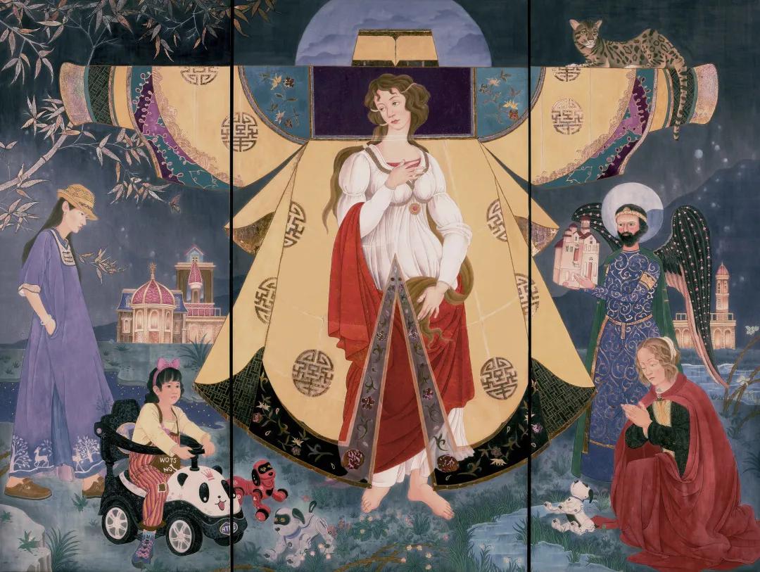 作品名称:《少年魔角》指导老师:焦洋,金瑞,徐华翎,张猛作品尺寸:183cm*155cm作品材料:绢本设色 金箔 银箔 铜箔十顾博伦