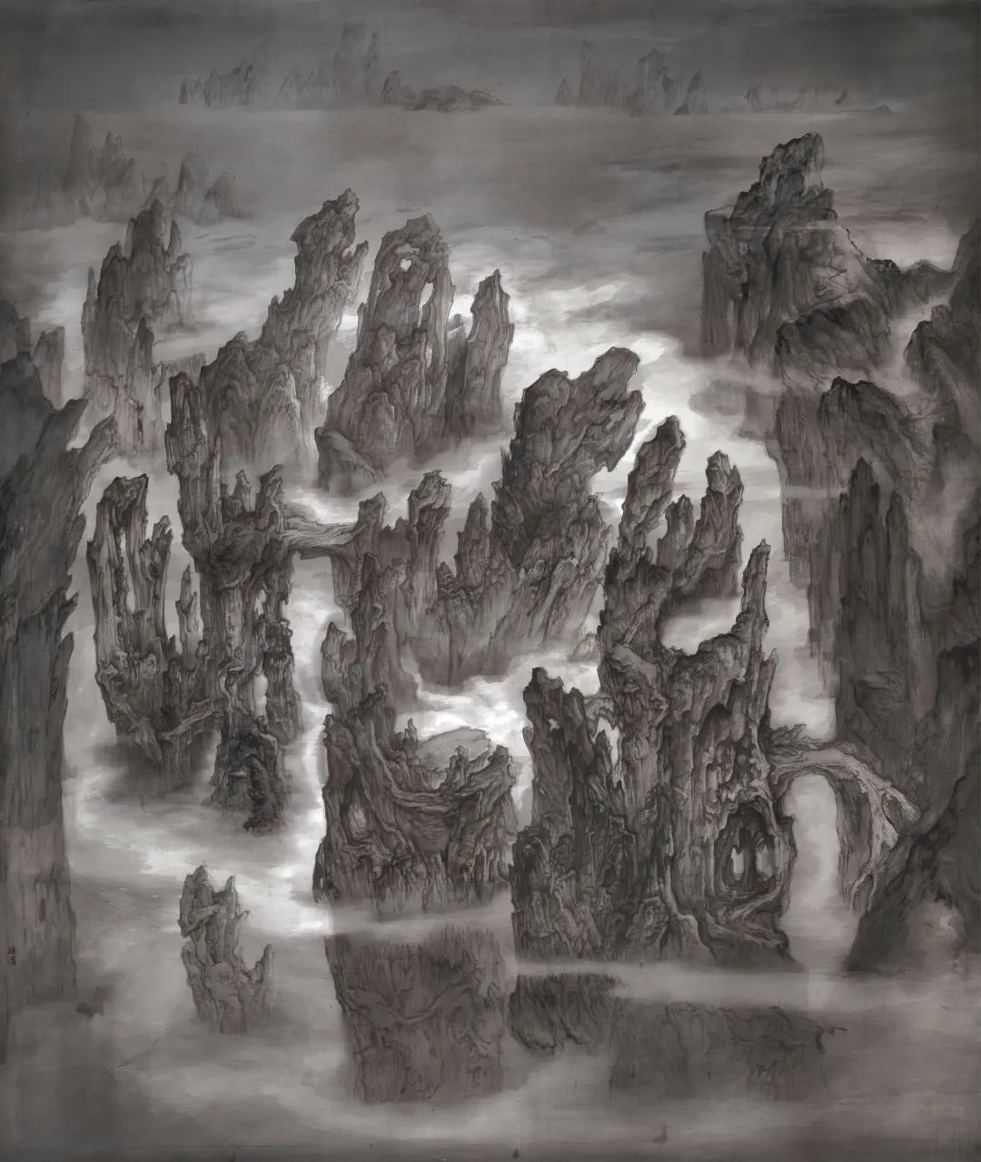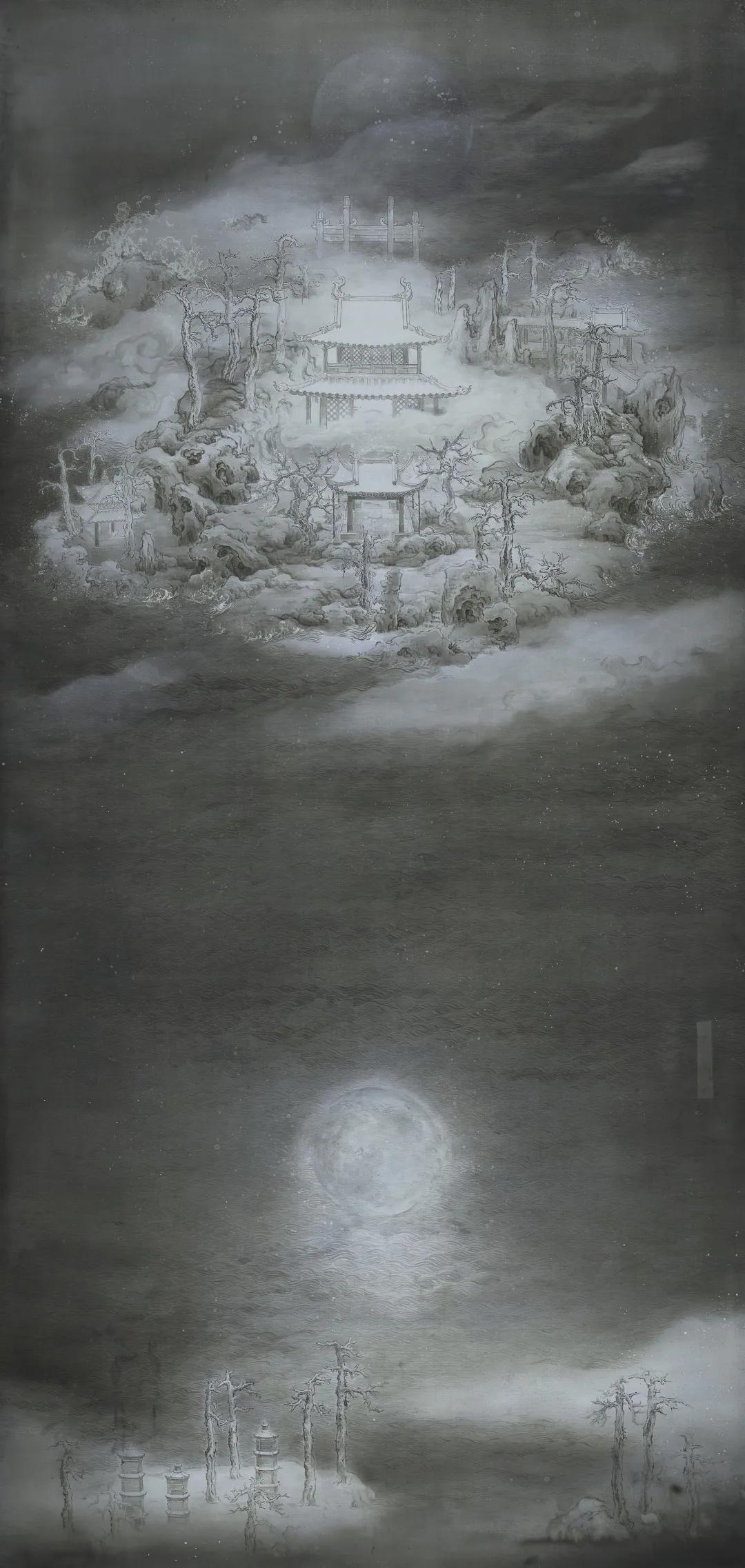 作品名称:《冥寂之境》指导老师:丘挺 刘荣 边凯 王子锟作品尺寸:200cm*170cm作品材料:绢本水墨