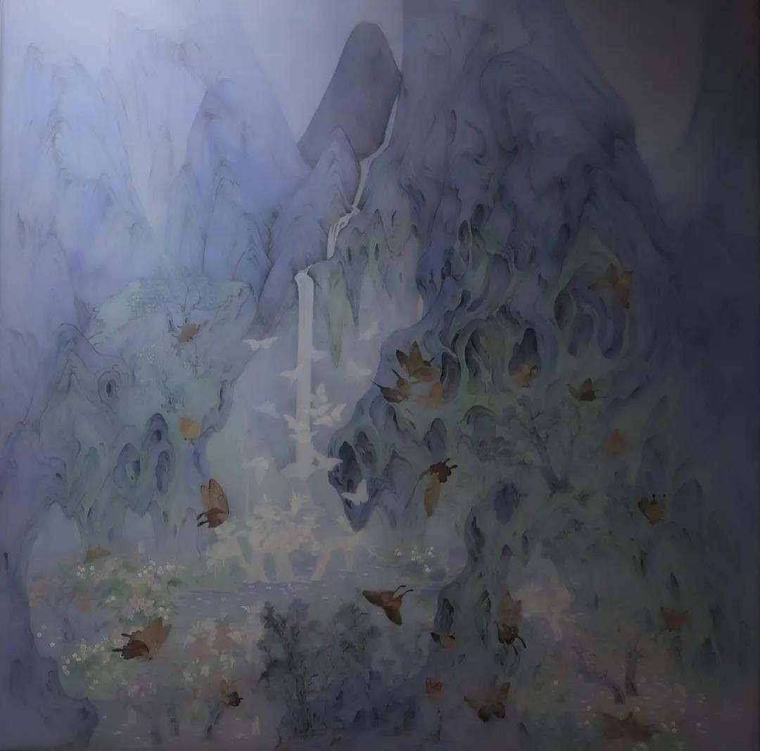 作品名称:《幽游》指导老师:丘挺 刘荣 边凯 王子锟作品尺寸:230cm x 230cm作品材料:绢本设色