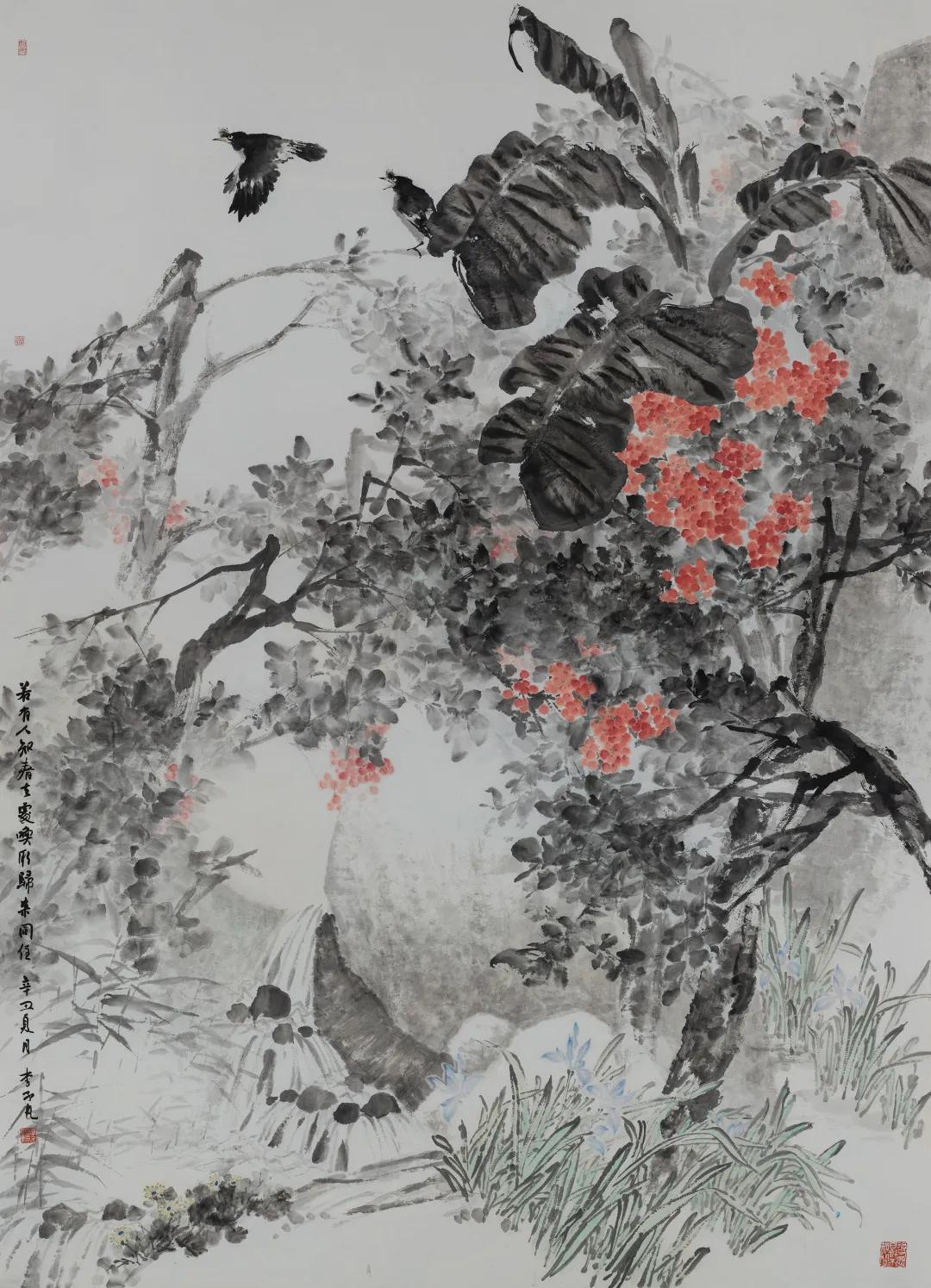 作品名称:《桃李年华》指导老师:焦洋 徐华翎 金瑞 张猛作品尺寸:210cm*170cm作品材料:绢本设色