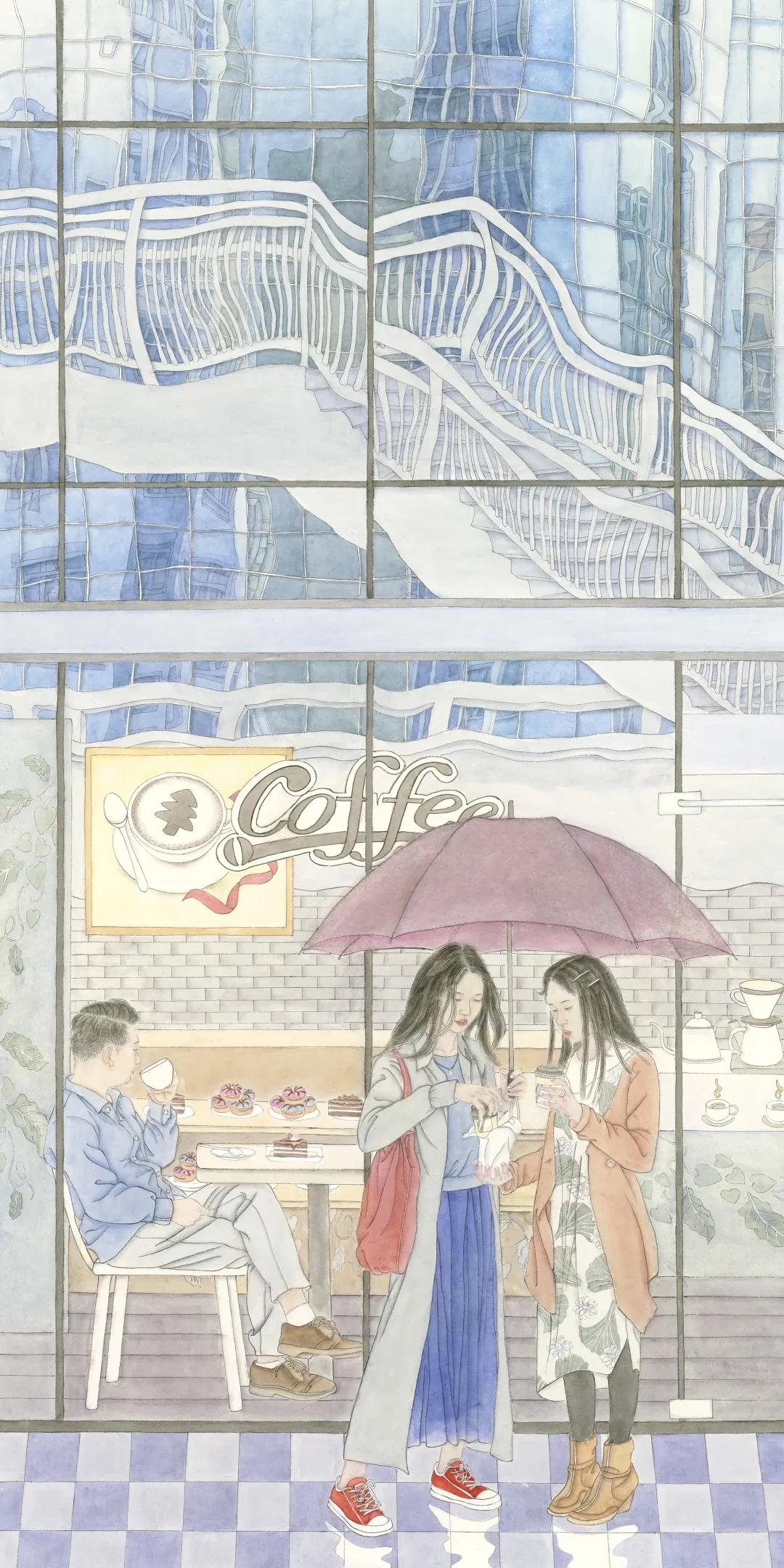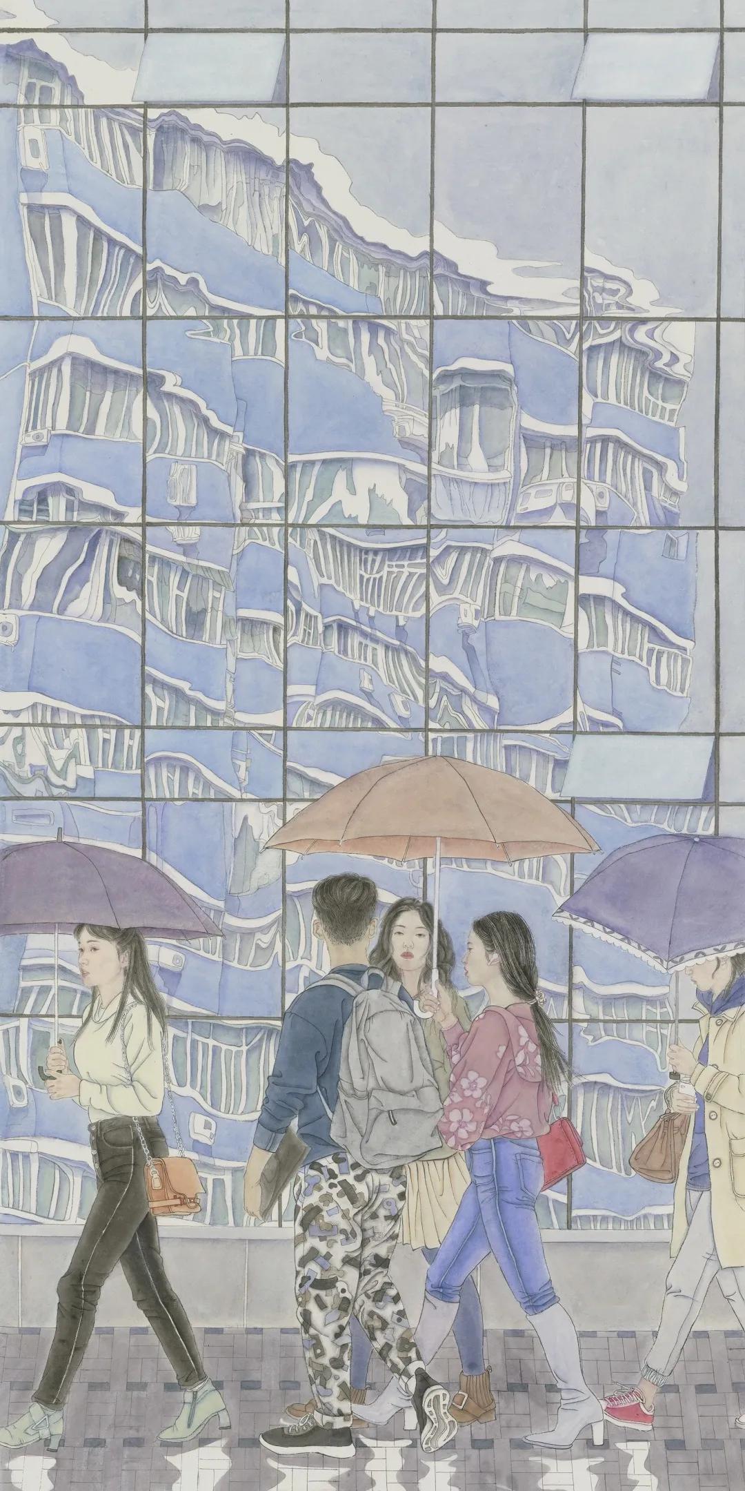 作品名称:《雨》指导教师:焦洋 徐华翎 金瑞 张猛作品尺寸:160cm×80cm*2作品材料:纸本设色