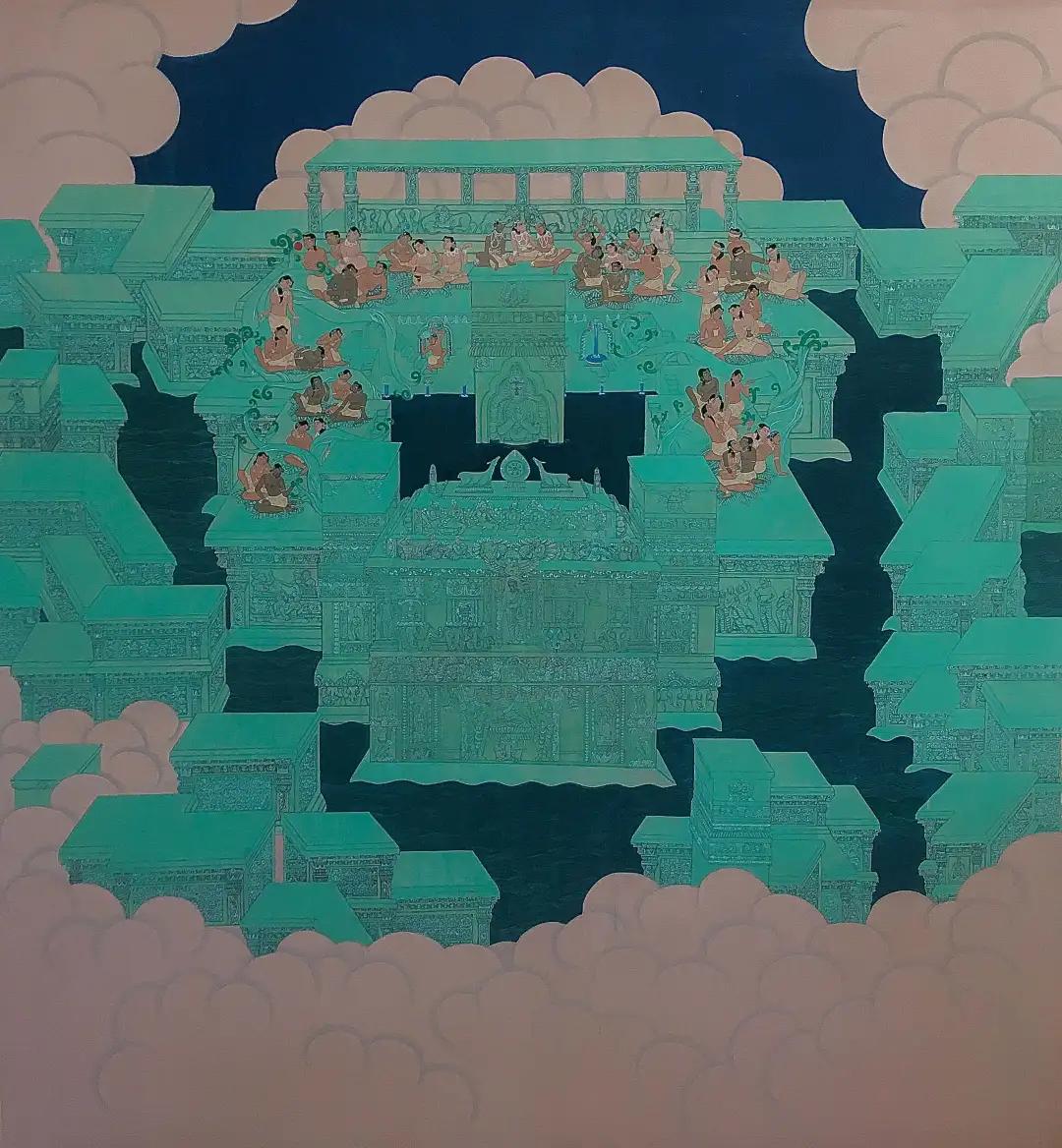 作品名称:《天河丰灯》 指导老师:谢青 岳黔山 陈相锋 张弓 尺寸:156cm*236cm 材料:绢本设色