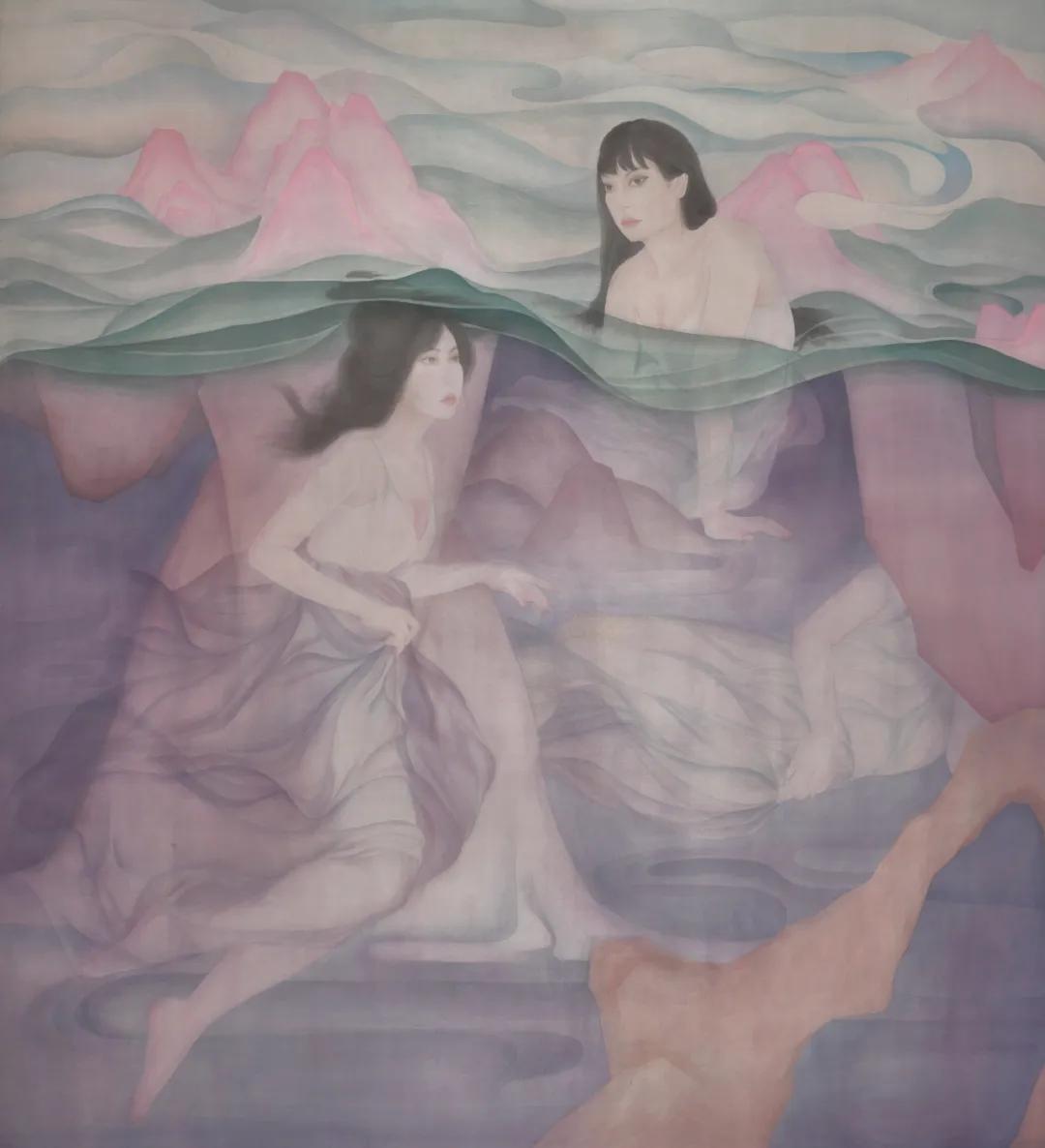 作品名称:《沉浮》指导教师:焦洋、徐华翎、金瑞、张猛作品尺寸:210x200cm作品材料:绢本设色
