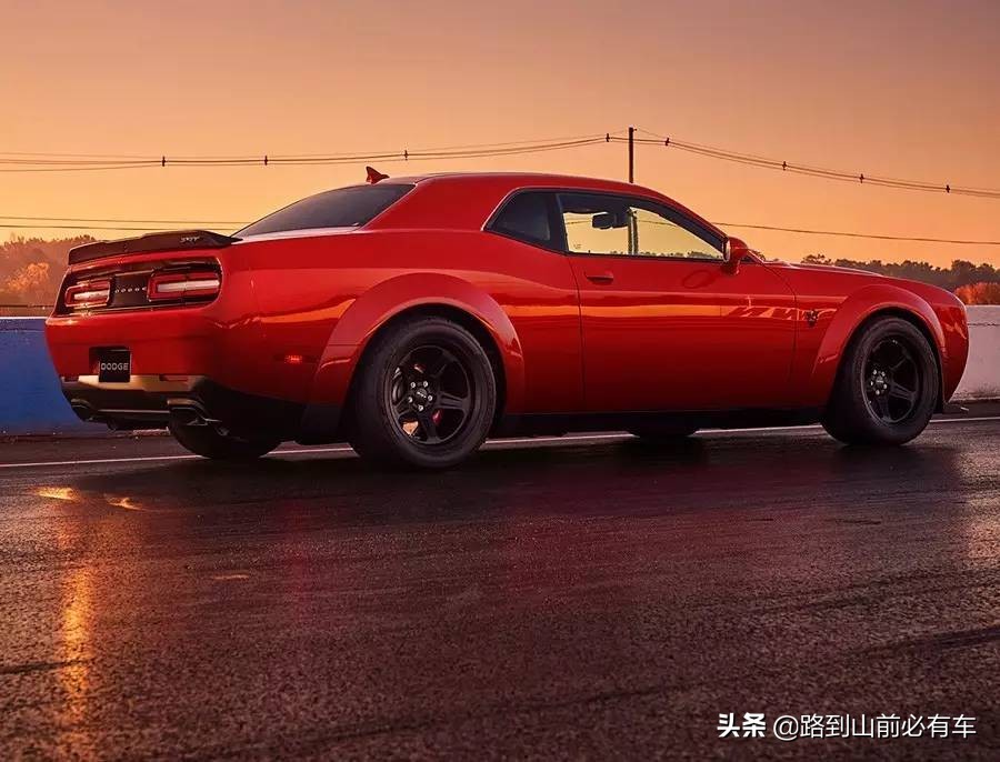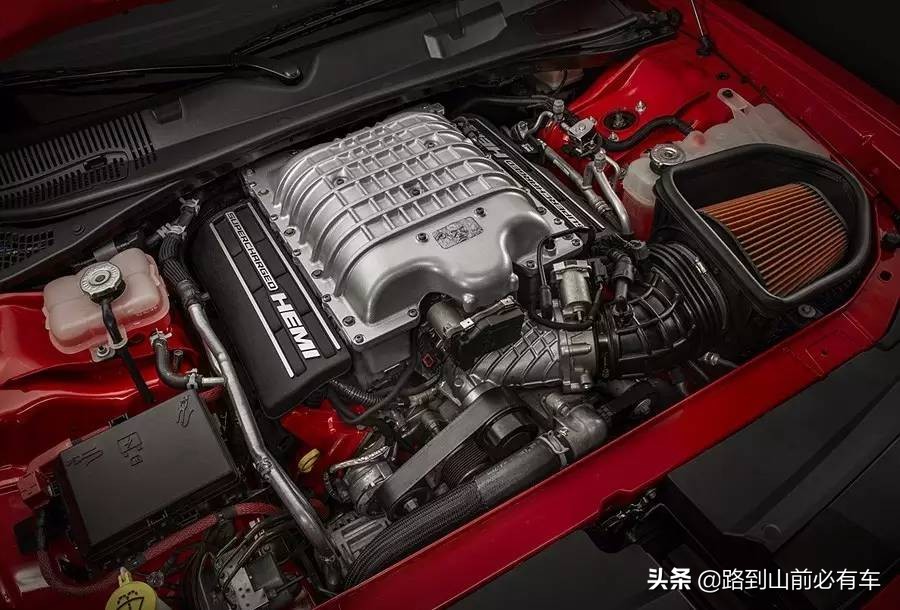 dodge challenger srt demon 搭载了目前马力最大的 v8 量产车引擎 —— 要知道即使是搭载 v12 引擎的最新款法拉利 812 superfast 也「只是输出」800马力。6.2l v8 hemi 引擎的活塞 、连杆 、气门都换上强化部件,并配备了2.7升流量的机械增压器,增压值达到14.5psi,引擎转速红线为6,500rpm;这套机增居然还用独立空调去冷却从头盖导风口引入的空气!而为了让引擎的性能表现维持在良好状态,「延时降温系统」在车子熄火后散热风扇与中冷器水泵会继续运作,让机械增压器更快地降温。