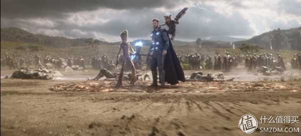 终于决战的号角吹响了,复联小队再次集结,瓦坎达精锐全军出击,和灭霸的三位副手以及浩浩荡荡的外星杂兵展开了殊死一战。我们的雷神也手持风暴战斧神兵天降,与火箭浣熊、格鲁特一起加入战斗。