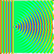 这是衍射,平行波透过小孔后,会产生一定程度的弯曲并向四周传播