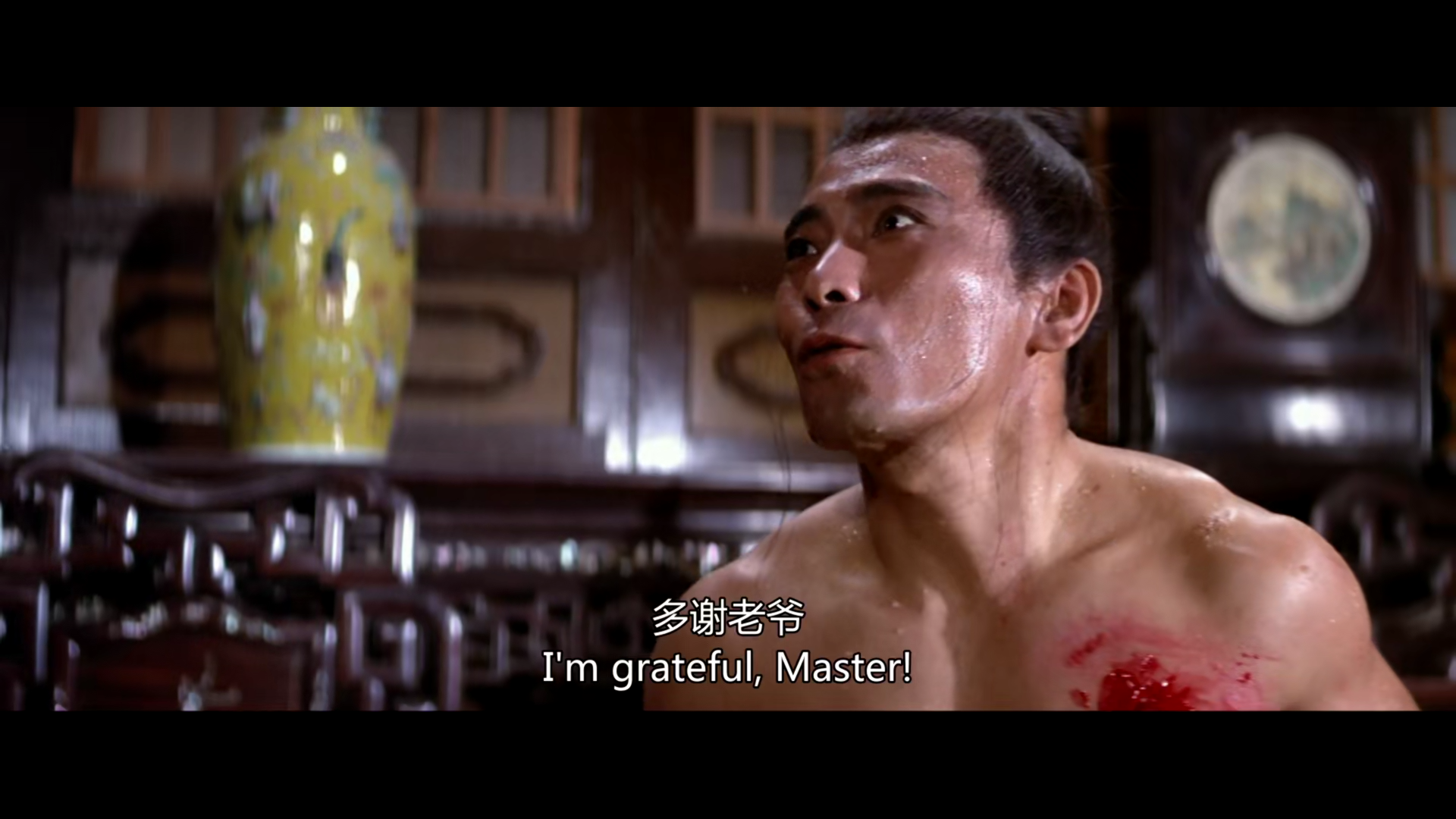 2、喷溅的血液和伤口以比较现实主义的镜头画面直接呈现出来,直接刺激观众的眼睛和神经。这对于之前看管了戏曲场景的观众,绝对是一个震撼。