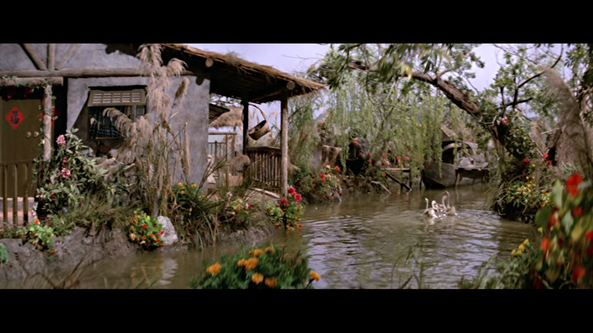 以景喻情,前面方刚在齐家时候一直是冬天,在树林里方刚被断臂时更是雪下不停。后面小缦家里却是换成了一派生机盎然的春色。要知道邵氏的电影都是在制片厂内人工制景拍摄的,这样可以控制打光,已取得最佳的摄影效果,这是要花很多钱的。导演花老板那么多钱来搭成这两个前后对比的场景,其用意也就是要告诉我们方刚这个人物在齐家是往死路上走(冬天代表死亡),而在小缦家是获得了重生(春天代表新生)。张导的良苦用心我们不可不体会。