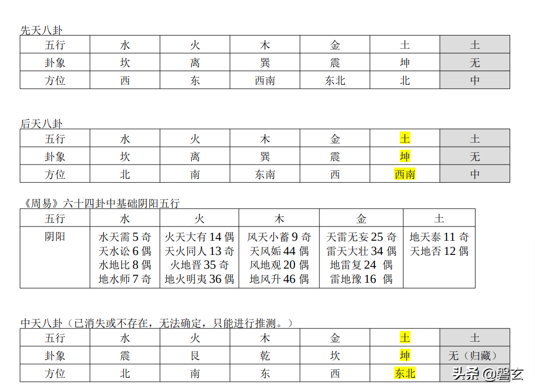 分析《周易》坤卦的卦辞,“西南得朋,东北丧朋,安贞吉。”可见中天和后天坤卦方位的变化。