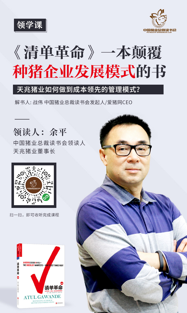 (以上内容精选自中国猪业总裁读书会,爱猪网主编战伟主讲的领学课《通过<清单革命>,解读天兆猪业如何颠覆种猪企业发展模式》)