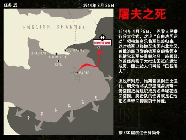 《盟军敢死队-深入敌后》是由eidos公司发行的即时策略游戏。游戏的是基于二战背景而开发的即时策略类游戏,玩家可控制拥有不同技能的队员,在复杂的关卡中完成各种难度的任务。并对通关时间和获得分数有严格的条件限制。