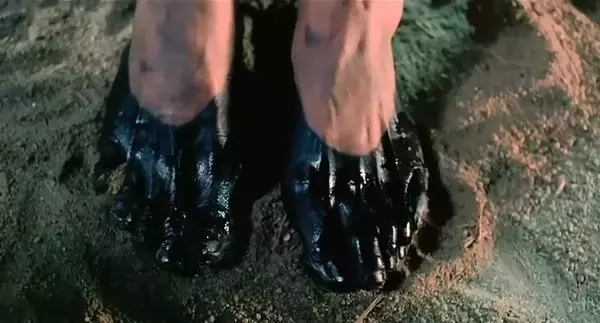 自己在脚上涂一个黑色的鞋子出来,别人踩上一脚赶快修好,遇到帮助自己的四季织女主人白筱君(张曼玉饰演)受到欺负,立马上前打抱不平,知恩图报。