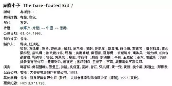票房高的不一定是好电影,相反票房低也不能说它差。杜琪峰1993年执导的《赤脚小子》一直被谣传票房只有1010港币,真实票房是300多万港币。有些人信以为真票房只有那么多,认定是一部烂片,大圣今天认真告诉大家,它是一部严重被低估的经典武侠片。