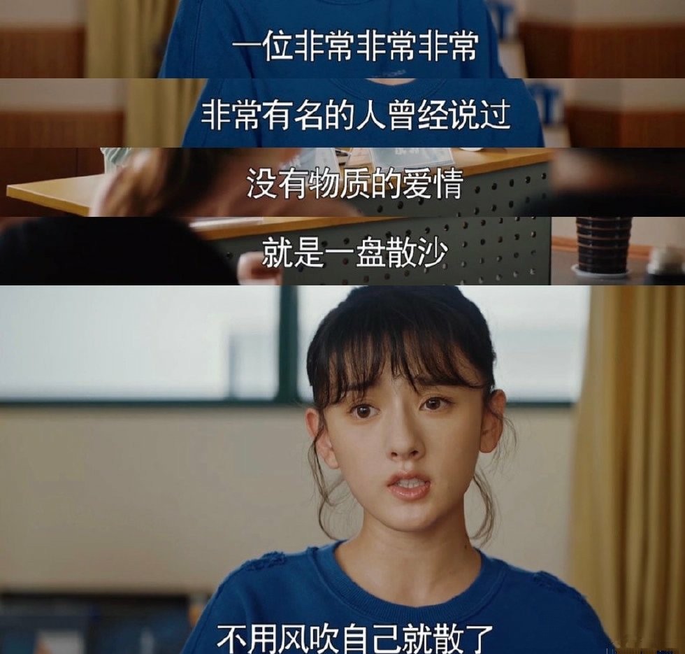充当爱情导师时,又拿出“没有物质的爱情就像一盘散沙”的名人言论……敢问追剧十级学者钱唯,你小小的脑袋里还有多少台词存货量?