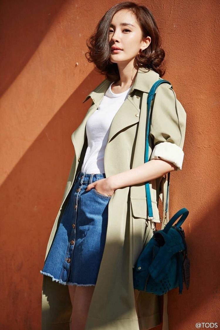 注意裙子下摆的长度不能超过风衣。倘若非要拗一个柔美的长裙造型,那么风衣必须是敞开的。