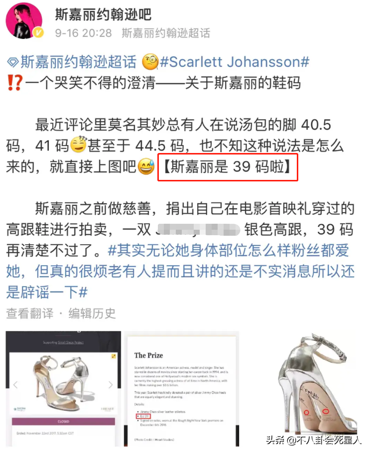 “寡姐”斯嘉丽·约翰逊,160cm的身高,竟然脚长达到39码!之前传言还说她的脚是40多码的,后来被粉丝辟谣了,公布了她穿的高跟鞋是39码。