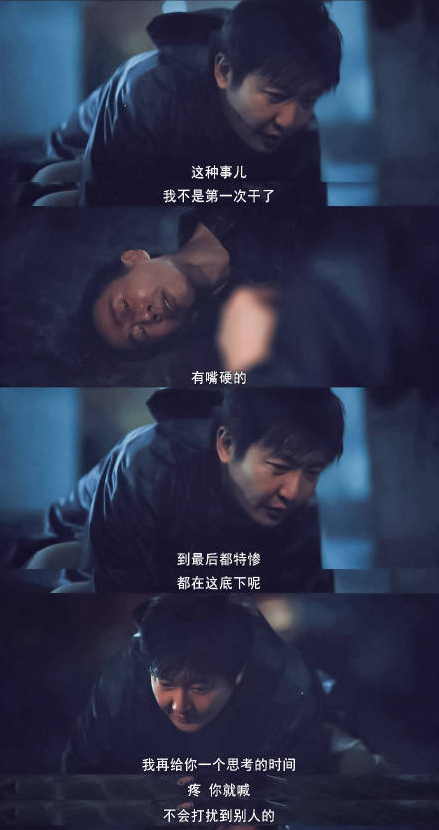 李唐和这个人你来我往的交锋几次过后,终于拉进绳索勒紧这个人,又问出来点东西:幺鸡欠他们300万,他们负责要钱。这句话过后李唐低头沉默了几秒钟,就是这一个低头的动作,暴露了他的“真实身份”——他并不是警察。为什么呢?因为其一警察不会私自出警,其二不会动私刑。