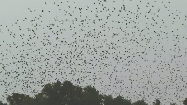 “快看快看,白庙小学一带的上空出现了一大群鸟,黑压压的一片,成千上万只,好壮观呀!”