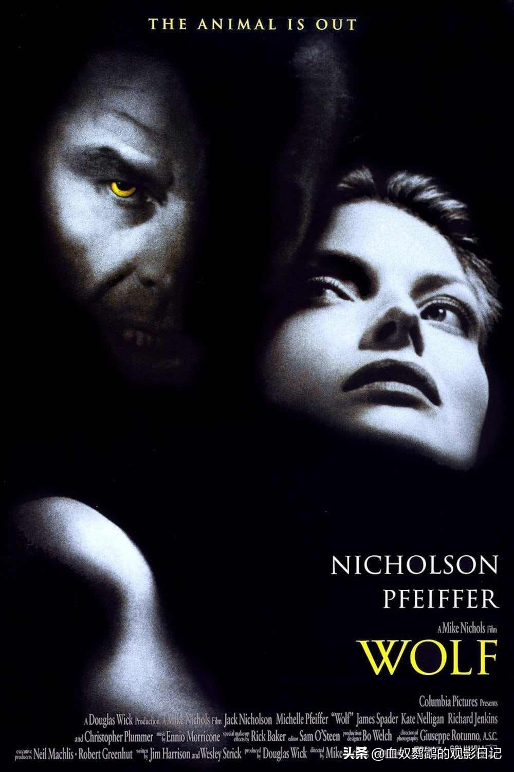 在众多的狼人电影有,有一部电影特别抢眼,鹦鹉本人也是非常喜欢的电影《狼人生死恋wolf》 (1994) 迈克.尼科尔斯导演,杰克.尼科尔森、米歇尔.菲佛主演。