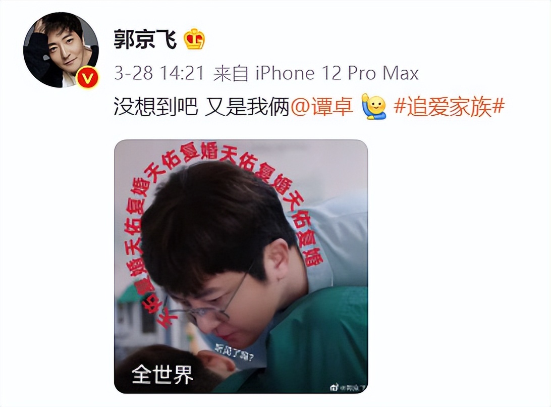 这部让“百万夫妇”住上大house的新剧,是首播于3月27日的都市爱情剧《追爱家族》。在这部剧里,退休老教师齐国盛和三个性格迥异的儿子,各自展开了一场“追爱之旅”。郭京飞和谭卓也终于不用每天困在上级任务和柴米油盐里,而是上演了一出轻松愉悦的都市喜剧。