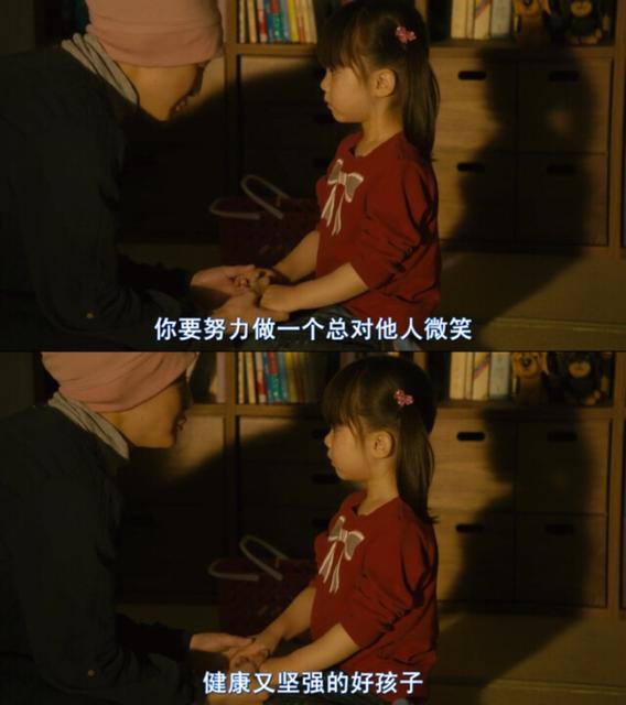千惠为了信吾,为了小花,每次化疗结束以后,她忍住持续地恶心和疼痛,每天早上起来给自己加油打气,坚持活下去。头发掉光了她就戴上帽子,胸被切了,装上假的。她尽量克制住自己内心的恐惧和负面情绪,每天做最精致的饭菜等信吾回来。