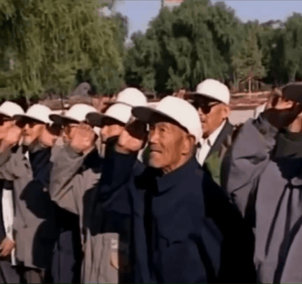 他们列队向司令员举手敬礼