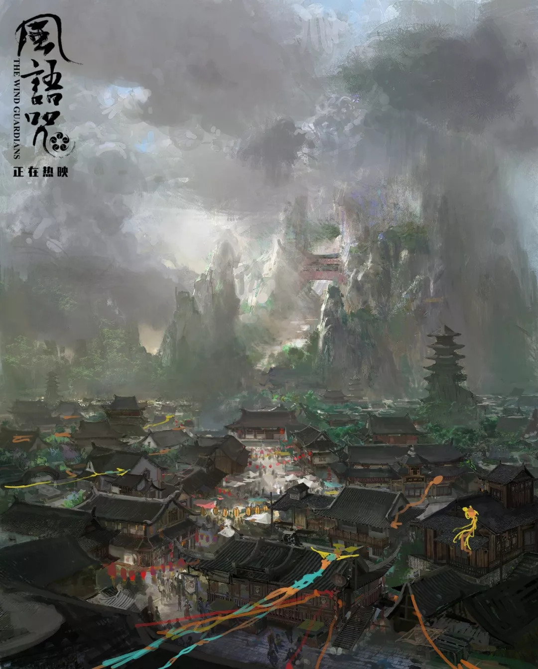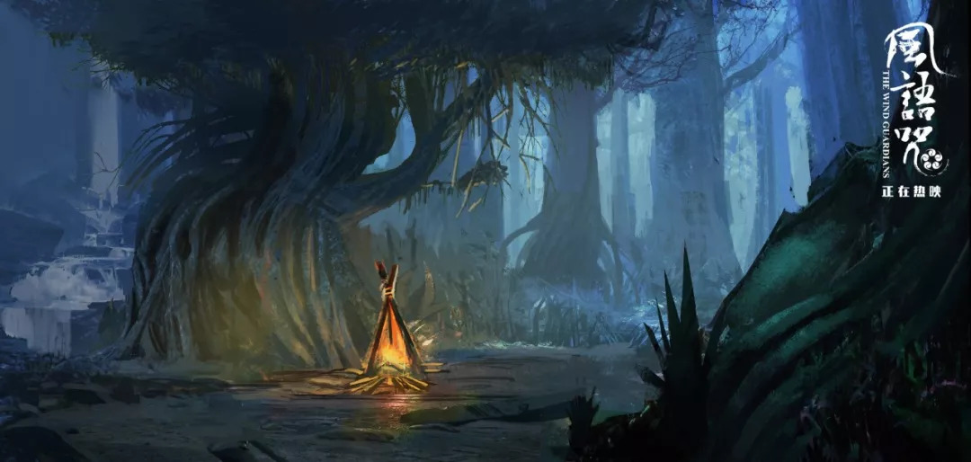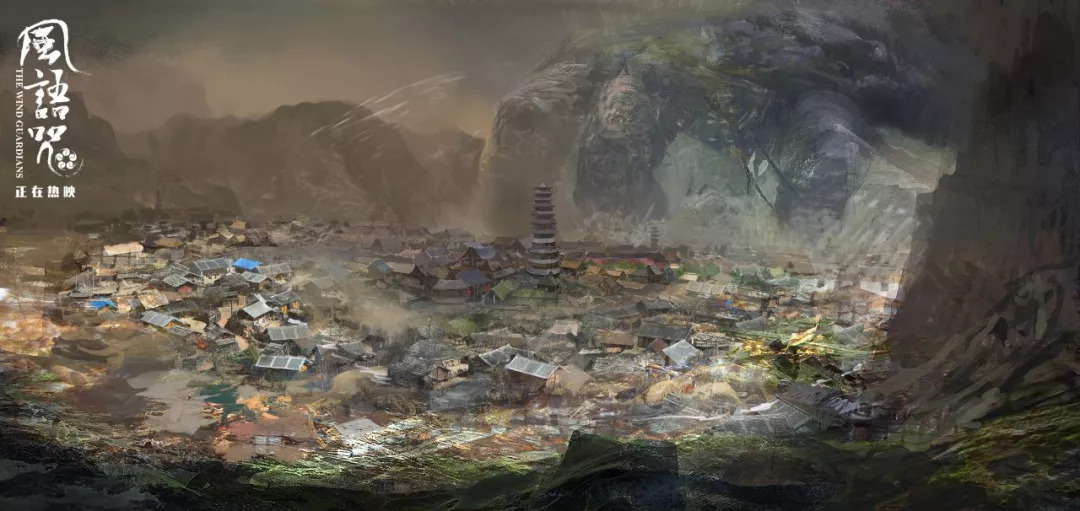 《风语咒》前期所有的场景、道具、人物、生物,镜头示意,氛围图,都是刘阔自己亲自上手设计和绘制的,因为我们后来在银幕上目之所及的一切都是在计算机虚拟世界里面搭建的,一切都是从“一张白纸”开始的。