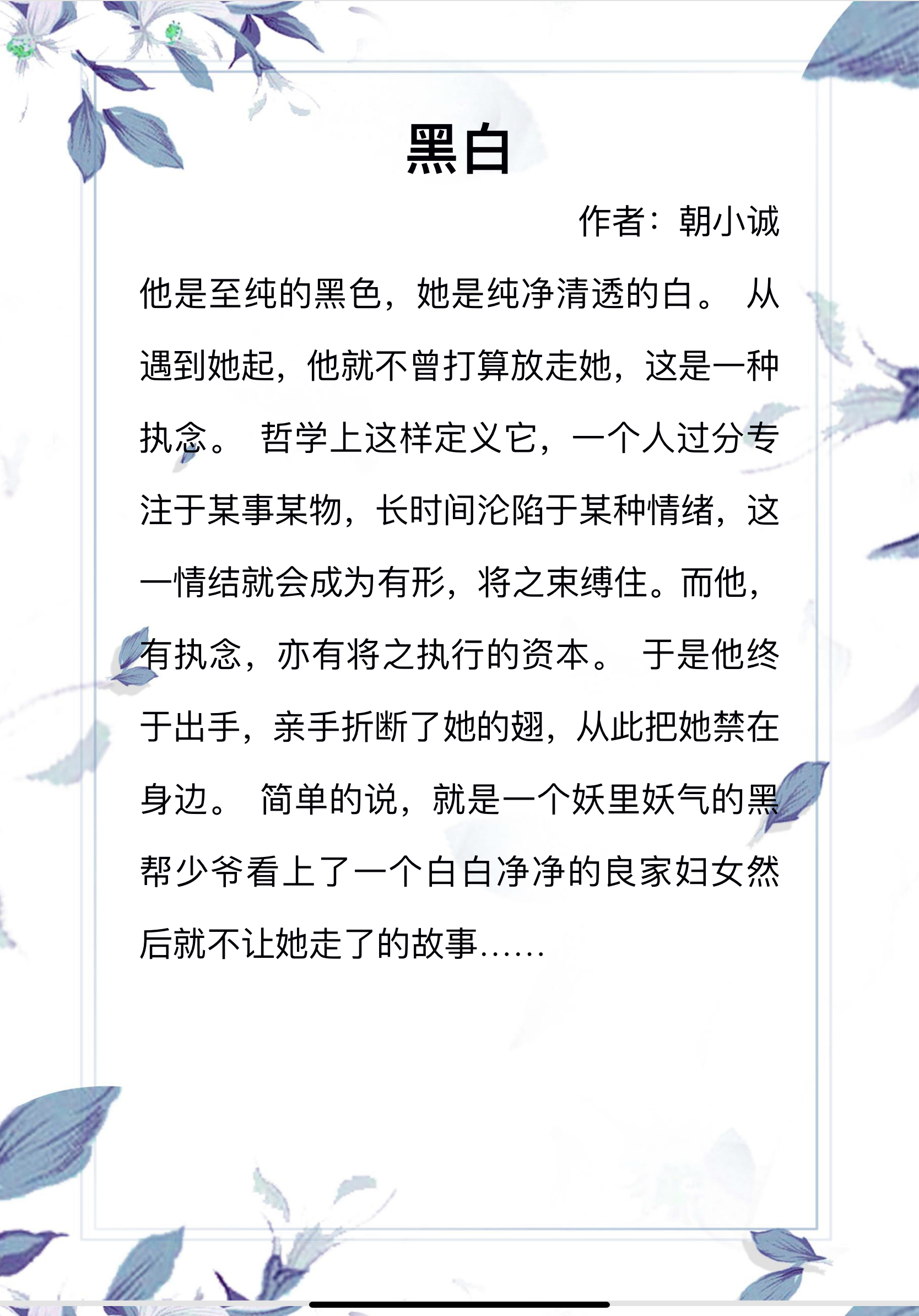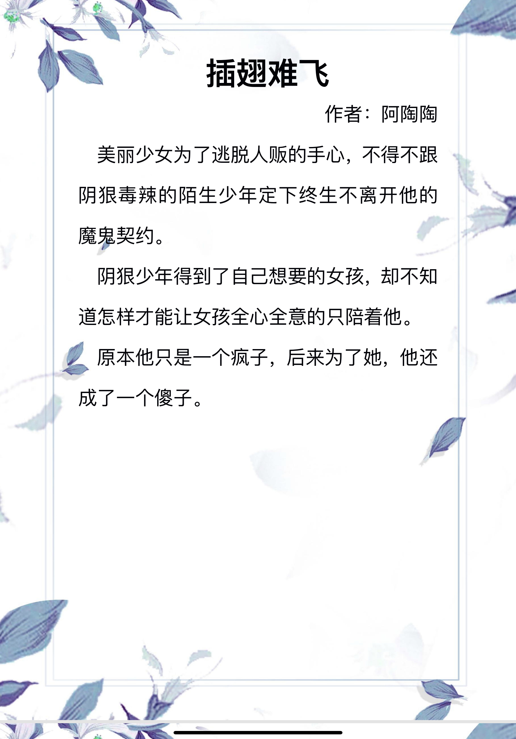 书评:女主不幸被拐卖,遇见了男主,男主对女主一见钟情,救了女主,强行把女主留在身边。由于女主的不适应和男主分开了一段时间后女主觉得喜欢上了男主又和男主在一起了。虽然男主心狠手辣对女主却是无微不至,宠爱有加。