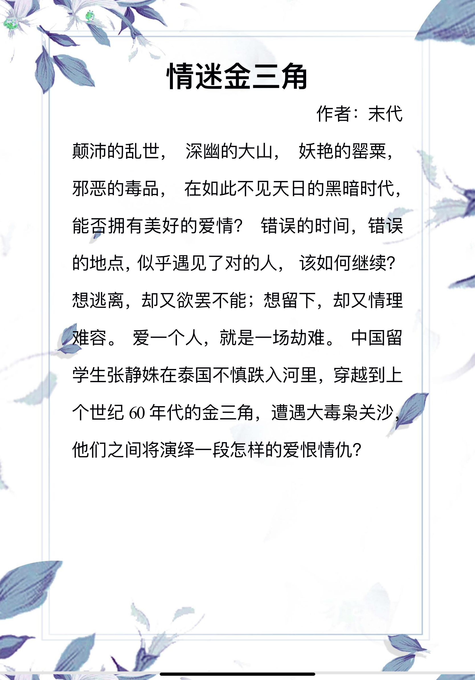 书评:这个主要是女主穿越到金三角地区与毒枭发生的一系列事情,感兴趣可以看一下。