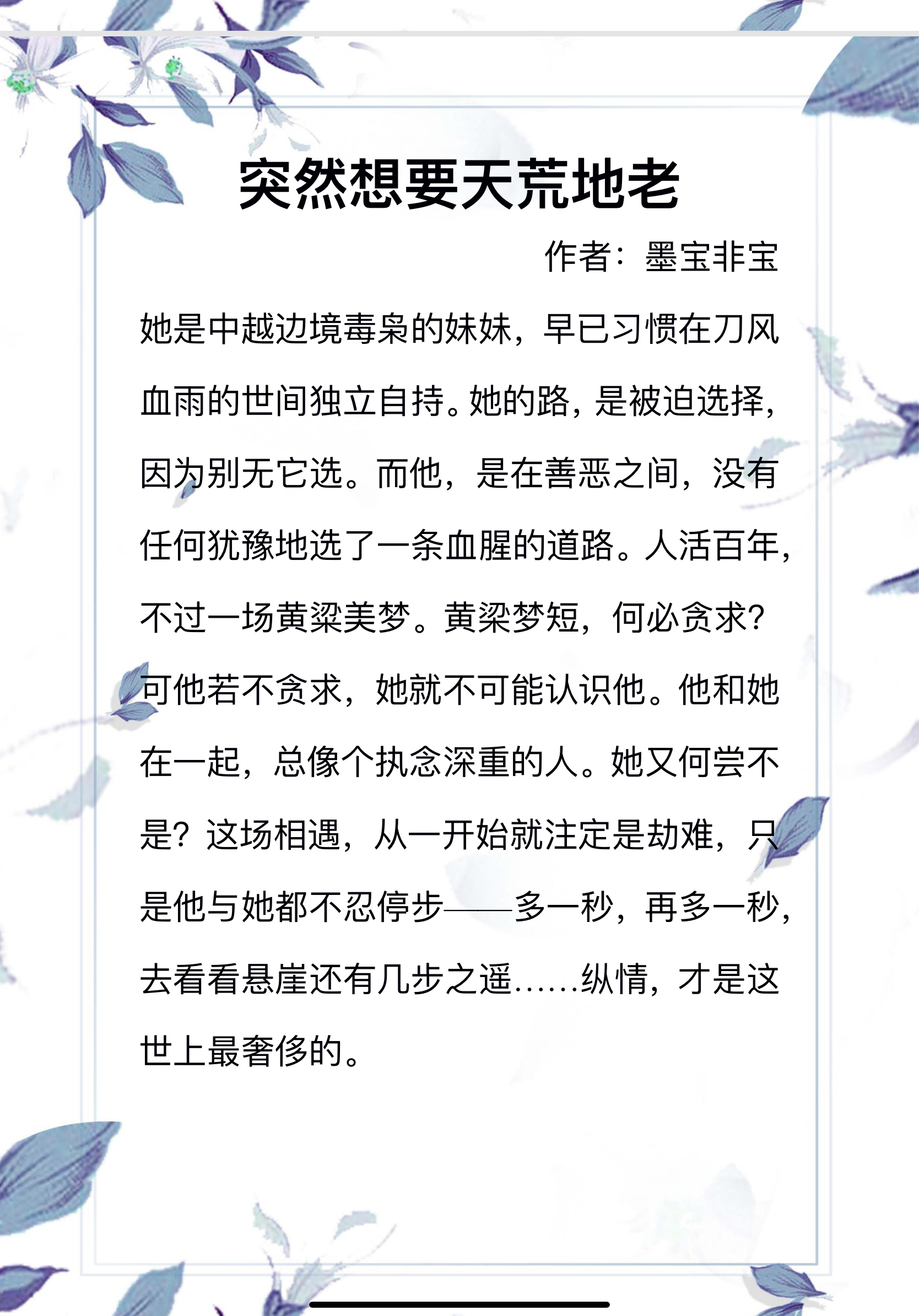 书评:男主是个很好很好的人,他一个人肩负了唐家的重担,他是唐家的灵魂,亦是唐家所有的信仰。他多才,是个有文化的流氓(对女主来说),他为女主也做了很多,他懂女主的小心思,给她独有的浪漫,他是真的懂她。他会为了她去看一些晦涩的书籍,只是为了和她交流…
